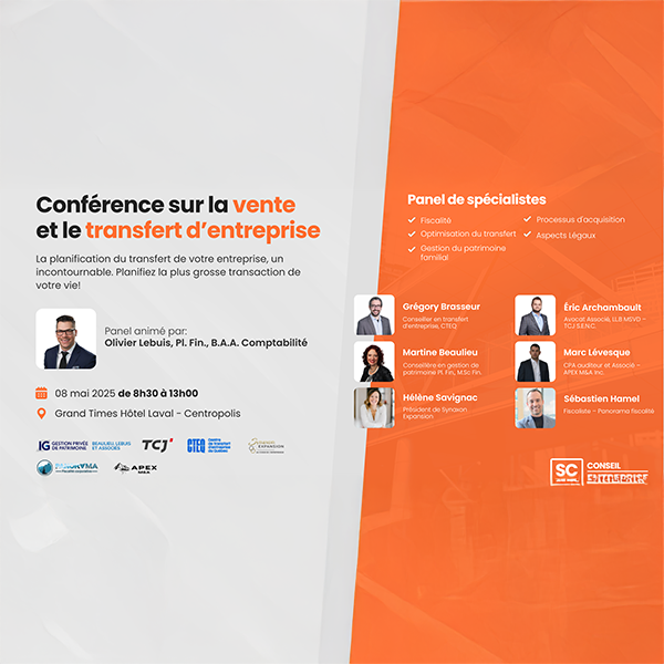 L’équipe de Martine et Olivier m’ont accompagné tout au long du processus de vente de mon entreprise. Nous avons eu plusieurs rencontres avec leurs fiscalistes, avocats et notaires. Nous avons pu nous assurer que notre structure légale d’entreprise, fiducies et autres étaient conforme pour maximiser notre situation. Mon entreprise a maintenant été vendu depuis 4 ans et leur accompagnement continue permet de maximiser le décaissement de mes placements et optimiser notre portefeuille grâce a différents produits.